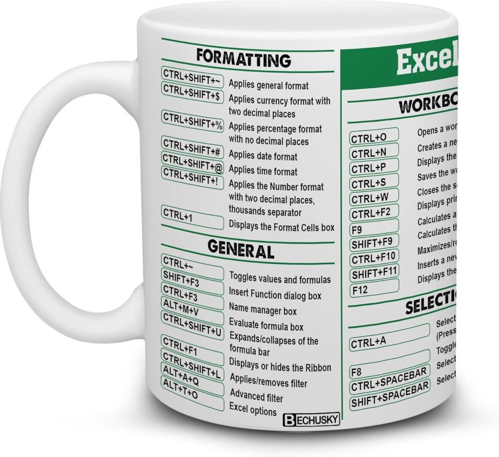 Get your Accountant Mug Excel Cheat Sheet Printed Coffee Mug Choosing gifts can be difficult. Many people have everything they need, so by giving something personal to them it will mean a great deal.